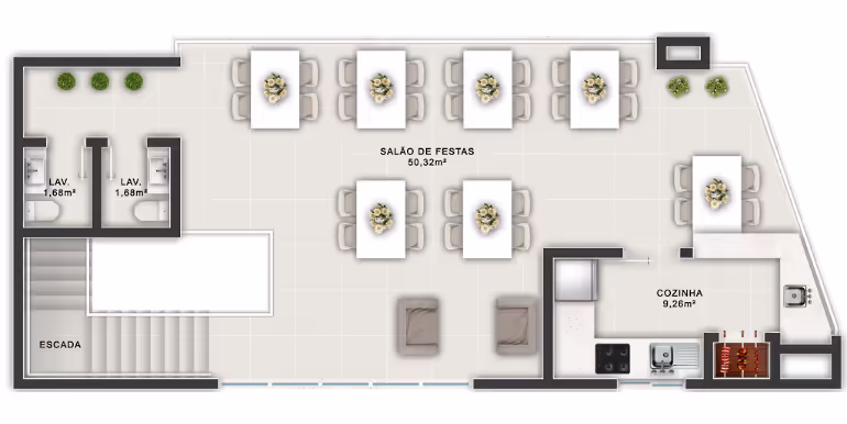 - Living com Cozinha Integrada e Churrasqueira a Carvão