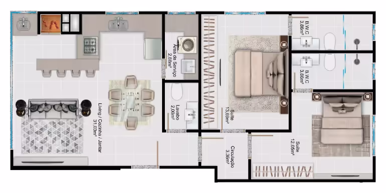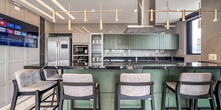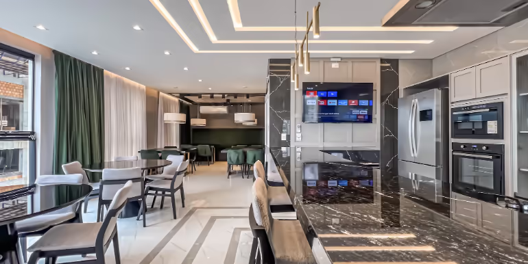 - Amplo Living com Cozinha Integrada e Churrasqueira a Carvão