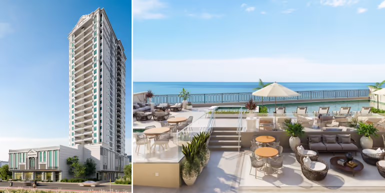 Apartamentos à venda no Edifício Palais Royal em Balneário Perequê, Porto Belo. Imóvel frente mar, estilo neoclássico, de altíssimo padrão, espaçoso, com linda vista, 3 ou 4 suítes, ampla sacada com churrasqueira, 2 ou 3 vagas de garagem e ótima área de lazer, localizado na Av. Senador Atílio Fontana.