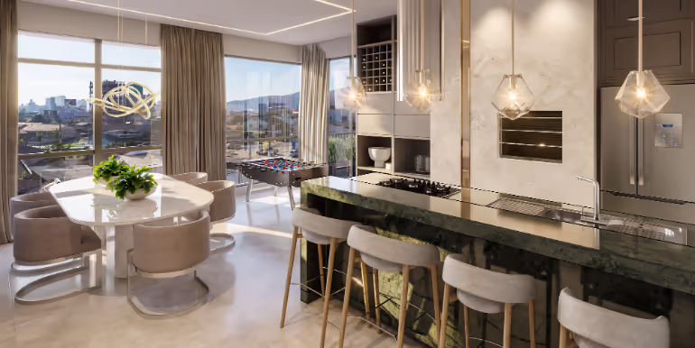 - Living com Cozinha Integrada e Churrasqueira a Carvão