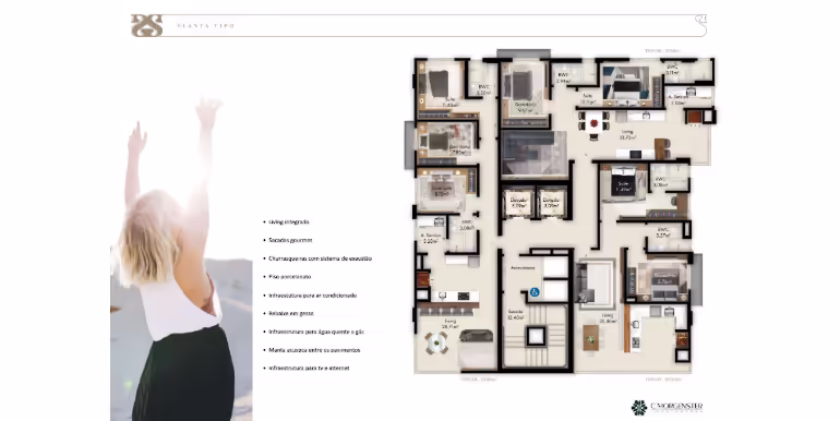 - Tipo 03: 2 Dormitórios, Sendo 1 Suíte / 72 m²