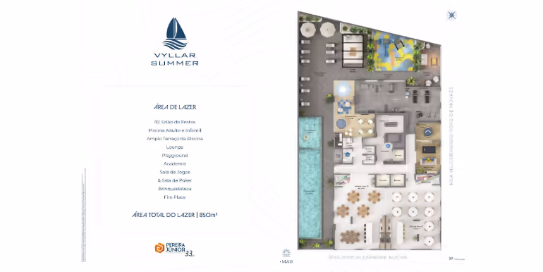 Apartamentos à venda no Edifício Vyllar Summer em Balneário Perequê, Porto Belo. Imóvel com 2 a 3 suítes, lavabo, living integrado com churrasqueira a carvão, 2 vagas de garagem e área de lazer com 850 m², localizado a apenas 300 metros da praia.