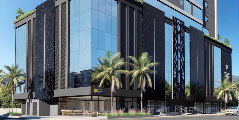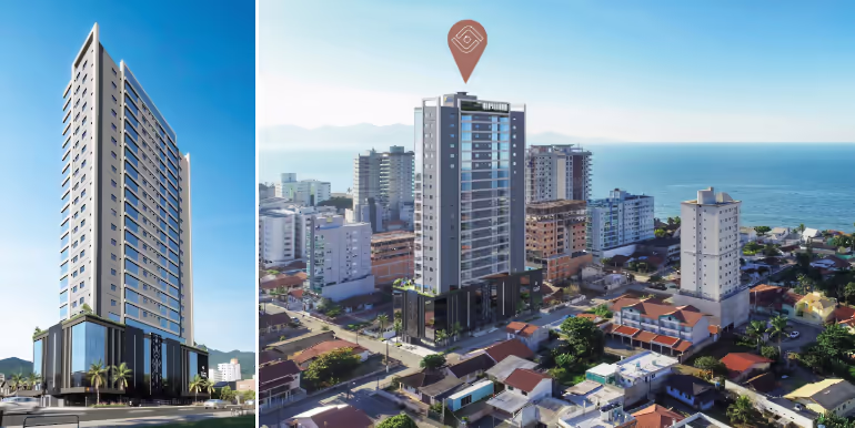 Apartamentos à venda no Edifício Vyllar Tower em Balneário Perequê, Porto Belo. Imóvel com 2 ou 3 suítes, lavabo, sacada com churrasqueira a carvão, 2 vagas de garagem e área de lazer com aproximadamente 1.000 m², localizado a apenas 200 metros da praia.
