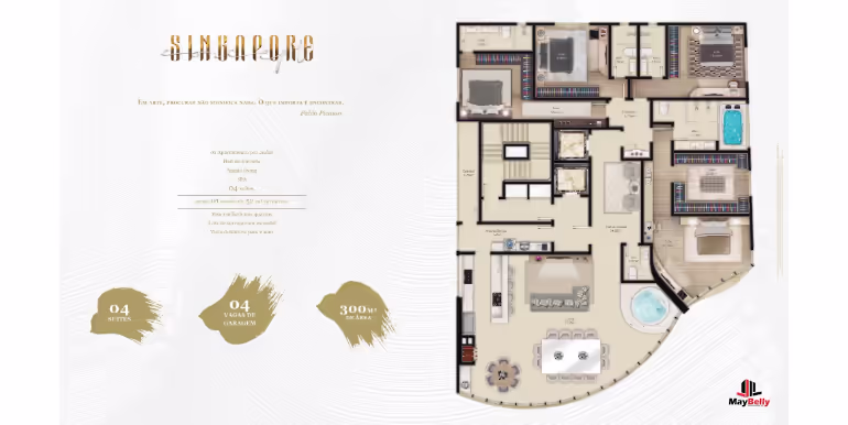 - 4 Suítes, Sendo 1 Master com 52 m²