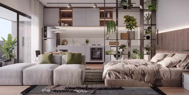 - Studios com 31 a 76 m² / 1 Suíte com 48 a 158 m² / 2 Suítes com 81 a 161 m²