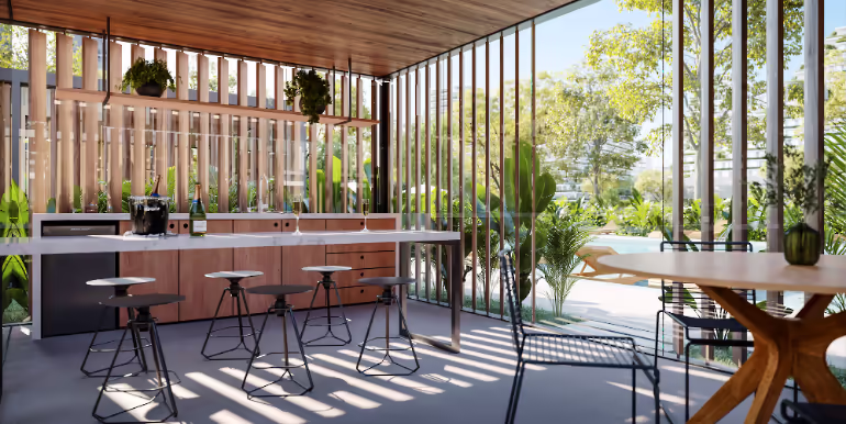- Living com Cozinha Integrada e Churrasqueira a Carvão