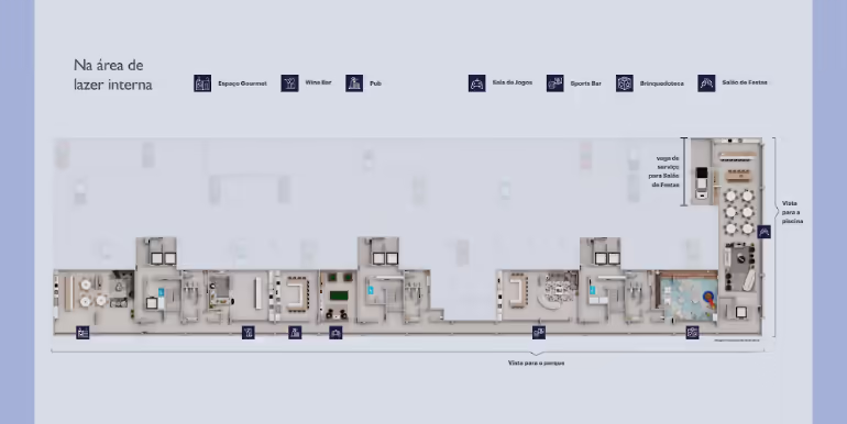 - Home Club com 3.000 m² (2.000 m² de Área Aberta no Térreo e 1.000 m² no 3º Pavimento)